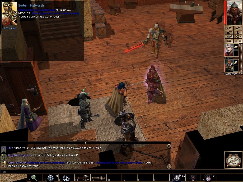 Please, please get rid of the automatic spawning in your mods. It is a huge pet peeve of mine and in this module really became an issue. I cleaned out the curtain wall and then the gatehouse, intending to head back out to the cave to rest and recuperate before taking on the stockade proper. How surprised was I to see archers back on the walls, the oil trap still working, etc. on the way back out - precisely when I was out of healing kits and we were all low hp. Karraway and Blodgett both died, along with my henchanimal and it was only a lone invisibility potion that saved my character's butt. Very, very amatuerish.