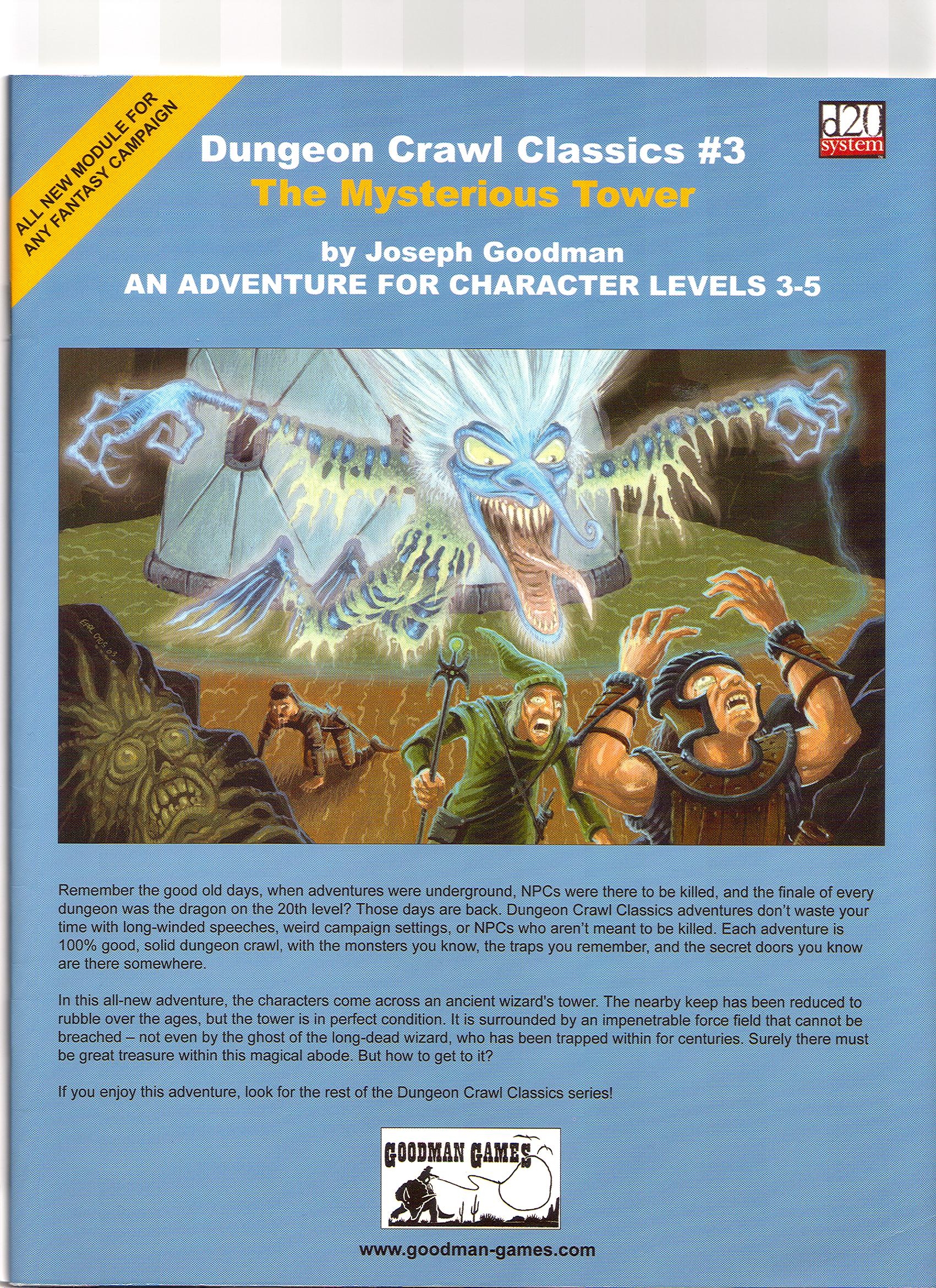 "In this adventure, the characters come across an ancient wizard's tower. The nearby keep has been reduced to rubble over the ages, but the tower is in perfect condition. It is surrounded by an impenetrable force field that cannot be breached--not even by the ghost of the long-dead wizard, who has been trapped within for centuries. Surely there must be great treasure within this magical abode. But how to get to it?"