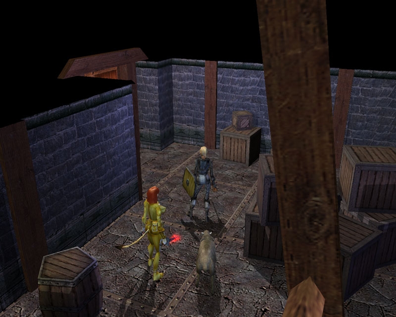 Although this was a generally fun, challenging, and nicely varied dungeon crawl, it had two major weaknesses which brought the score down for me. The first was dialogue: although it's good in some places, it's sorely lacking in others. For instance, when I approach the adventurers in the camp, the first thing they say is "Want me to join you." They don't introduce themselves, they don't ask who I am, what I want, or what I'm doing, and so on. In short, not only do they not have personalities, they don't even behave in a believable manner. This kind of thing crops up throughout the module, along with a lot of instances where the dialog loops back on itself, forcing you to have the same conversation several times in order to get all the information. The other major weakness is the story. I got the impression that there's a really interesting story here, what with the underground pub, the temple, the drow, the undead, and Logos Brin, but I never really got a sense of what it was all about. I sort of had to piece it all together, and it still left a lot of unanswered questions. For instance, not only do the people underground not believe in the surface world, but mentioning it is tantamount to heresy. But why is this the case? And how did all these people get here? And when I did bring back proof of the surface world, the person I brought it to just seemed to take it in stride. All in all the storytelling just felt very muddled.