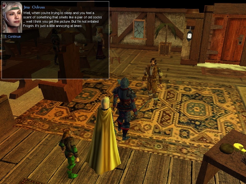 The cutscene when Aidan (my paladin) and his friends ran from the zombies into the Mayor's house, and Frogrin approaches Aidan and talks to him, crashed at least four times. The game would set Aidan in cutscene mode, and Frogrin would run up to him and do nothing. I had to ALT-F4 out. When I reloaded and tried to talk to him, the game said that he was busy, even though he wasn't in 'combat mode' or the battle music wasn't playing. I had to enter Debug mode and teleport Aidan to the mayor. Something apparently went wrong, and the convo was triggered. Thankfully, it worked this time!
