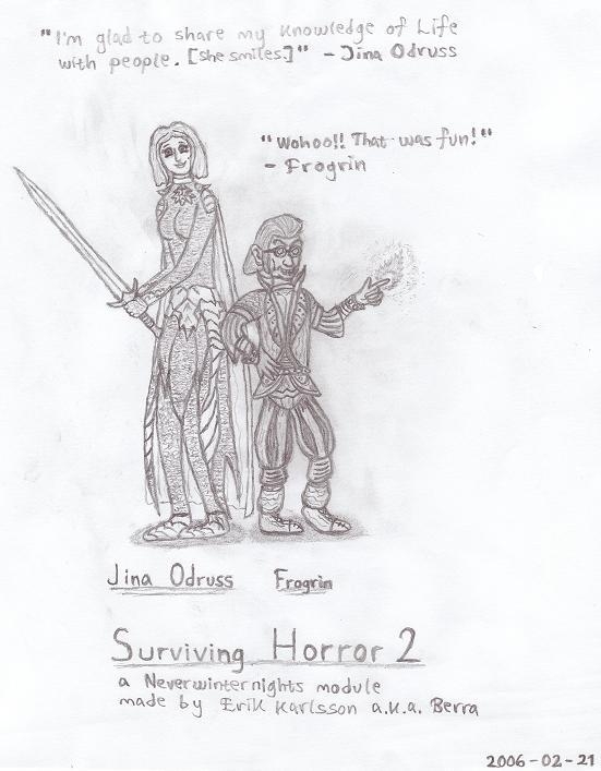 "SH2 takes place two months after the adventures in Surviving Horror. You, Jina and Frogrin have lived in the village of Haladar's Inn for that time. A terrible snowstorm rages over the village and rumours can be heard of that a caravan sent to get some food has been missing for some time. As soon as you hear it, you decide to go outside and look for the missing caravan. But what awaits in the coldness of the snowstorm? Can it be so that you're just about to enter a nightmare even worse than the one you survived two months ago ...?"