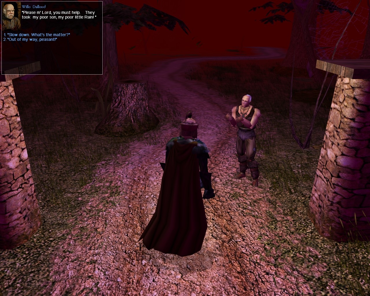 The dungeon and the other areas looked very nice. There were some cool "special effects": burning coffins, etc. The story was okay (and the ending quite cliff-hangerish), and I'm looking forward to playing the sequel. I liked my companions, although naturally their having been more talkative would've been sweet (especially as from their responses it seemed that there might have been some plans for writing some more dialogue for them). The halfling had some funny comments that he shouted in the middle of fighting (not quite remembering for whom...), but their high frequency made them a bit irritating, in the end.