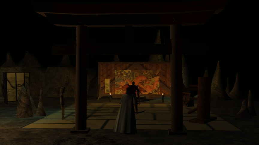 As for the delay in placing characters were they belong- I've been wrestling with that one since I started building (months ago). I've seen solutions such as fading-to-black upon entering an area, but I found it annoying adding to the delay between areas. I hear good things about the day/night cycle in "Trouble in Silverwood" though...