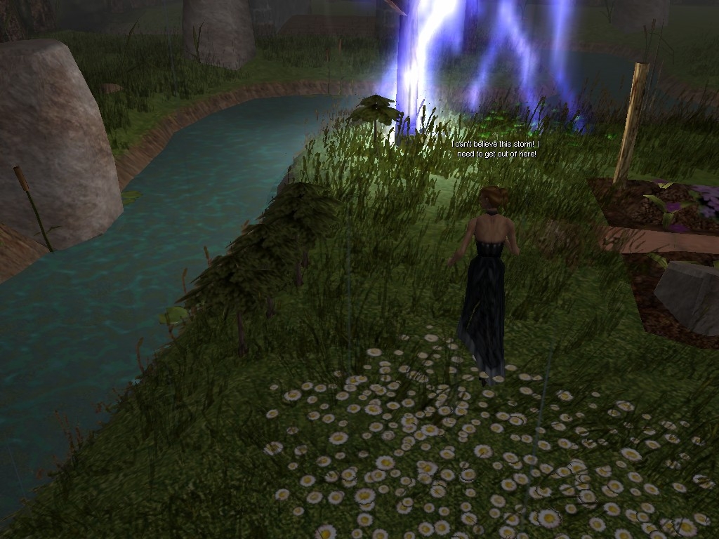This module assumes that you are walking along through the local park and get stuck in a thunderstorm. You run for shelter when suddenly you experience an explosion of light and sound. You feel yourself falling and everything becomes dark.