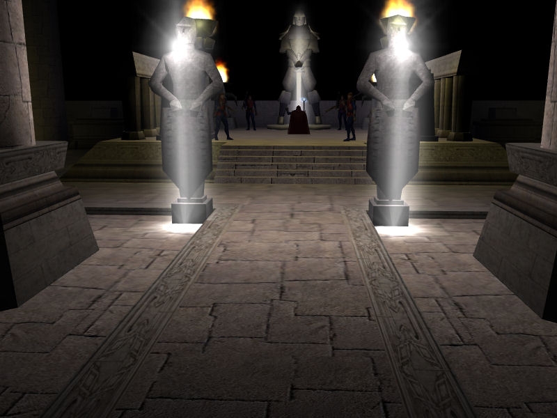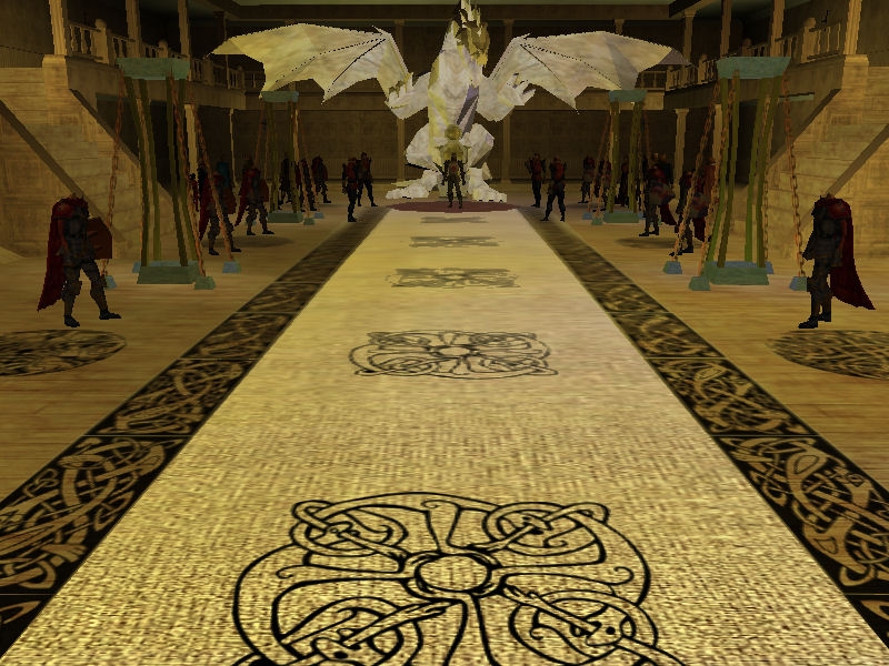 So return to Evannah. Spent quite some time escaping with her, you have to take the quickest route to my room, otherwise she'll wait outside king's chamber, if a guard got in the way she'd wait there. Finally into my room and then combat. Part of the dialogue says I take my mask off when I speak to cousin so he can recognise me but my player still looks like the diguise (old man/bard in blue costume). The equipment you receive from vault is very powerful ie +3 hasted full plate, the cousin drops a +3 long sword and after killing guards (best to run back into one of the small rooms so at the max only 2 are attacking you) go back to my room.