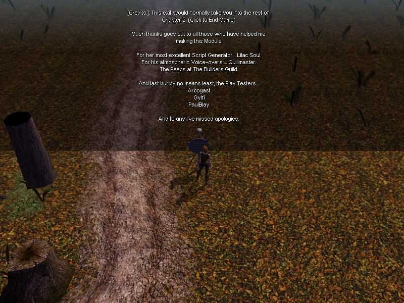 Thanks for the vote Jael. I'm still working on part 2, It's getting huge though so it will be quite a while arriving. I'll have a look at it again and fix the convos and such. _________________________ Stuff I've done.