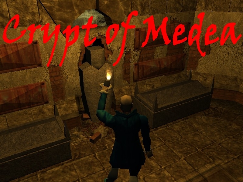 After falling unconscious during a walk through an old cemetary late at night, you awaken in an unfamiliar tomb. This tomb is, in fact, the Crypt of Medea, and it is filled with deadly traps and hostile creatures. But who is Medea... and for what sinister purpose have you been brought to her terrible crypt?