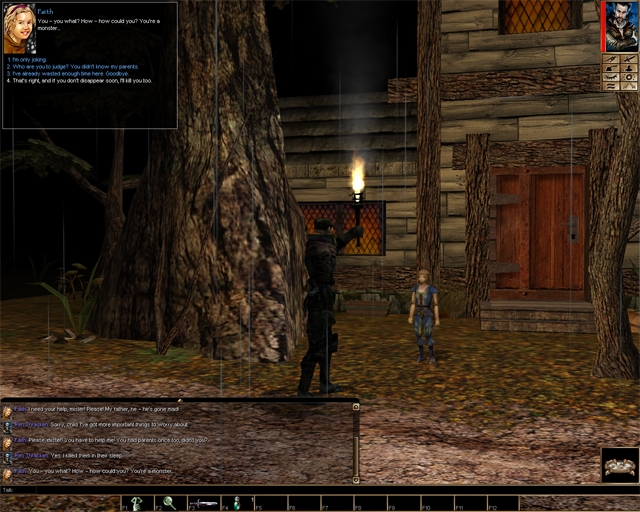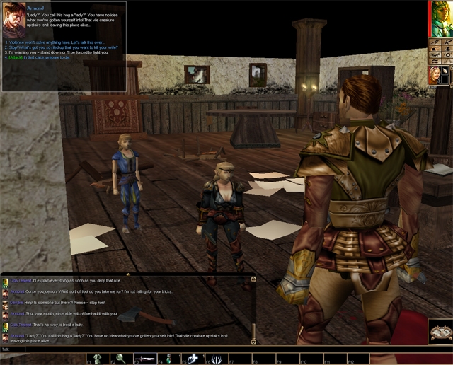 A short 3,600-word BioWare Neverwinter Nights module focusing on dialogue, nonlinear storytelling, and choice/consequence. Player is offered 3 mid-game decisions with a total 6 possible outcomes. No combat. Requires NWN, Shadows of Undrentide, and Hordes of the Underdark.