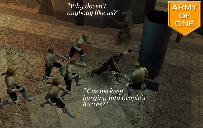An action-packed adventure designed for Melee fighting characters. Fight evil foes, make new friends, battle your way through hordes of enemies and make a few things explode.