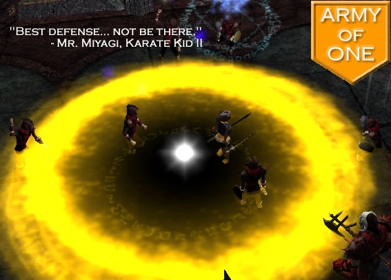 Also why am I damage by a meteor storm twice with no way to protect my character or my allies. On most battlefields the defenders have a chance to set up defenses. What defender is not going to make use of the city walls and it's defenses. I have played many NWN modules where this has worked effectively and the attackers still have a huge chance to win. I am not knocking it the finale. I have tried the ending before I know exactly what the dragons can do. The instructions given are to defend the wall. If you actually do not have to defend it why give those instructions?