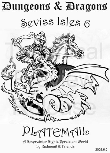 Seviss Isles is a persistent world module. PLATEMAIL (Seviss Isles 6), is an overhaul of the previous release CHAINMAIL (Seviss Isles 5) that involves a near-complete rewrite of the module's architecture and other content.