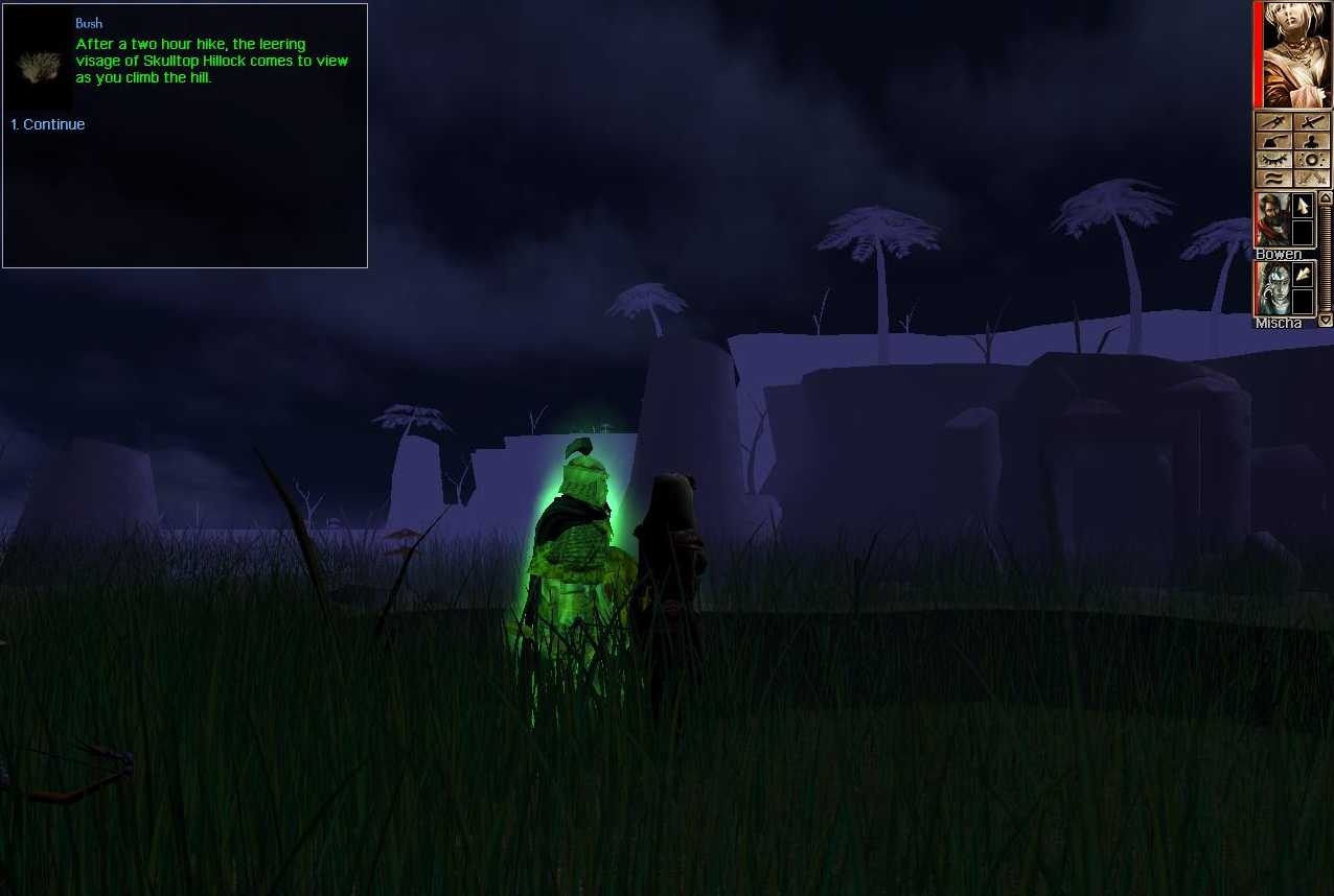 - When coming to the hillock if you chose to go to your left as you enter it (along the "coast") via a slope and then go back through "skull's nose" and step on the trigger conversation pops-up and terminates immediately. This are is also very barren, even though your conversation says it is barren, it could have some rocks or sth.