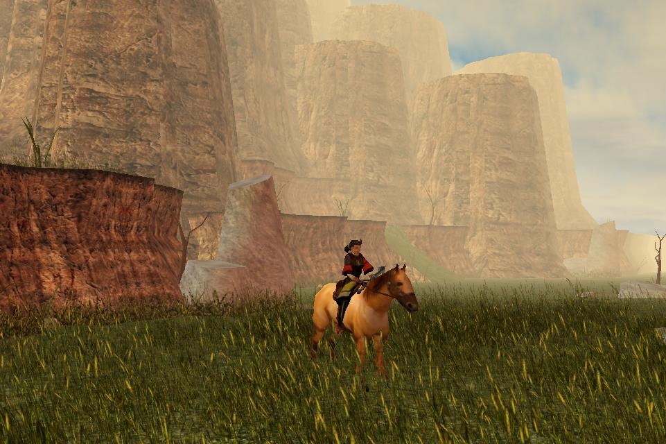 It was also our goal that many of the quests or ways to make gold & xp would not be centered on killing, but on movement or escort of NPCs. In addition to dungeon-raiding, you can escort merchants, or buy a pack mule and mine jade or salt or stuff like that and sell it in town. Ruins of ancient civilizations are not necessarily evil and monster-filled, they might be refuges in hostile terrain instead.
