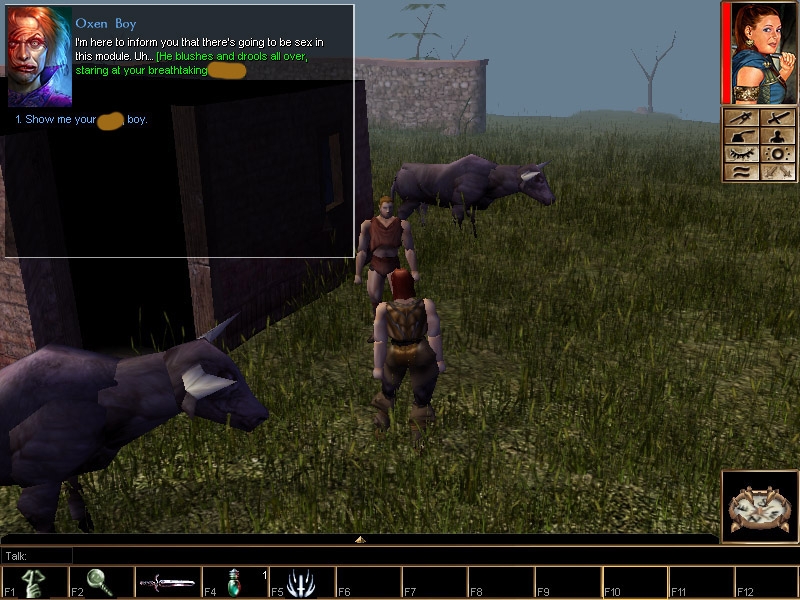 * It does contain a vicious house cat and a sexy monkey from other people's hak packs, as well as over 1100 words of breathtakingly erotic dialog and even more in the cutscenes!