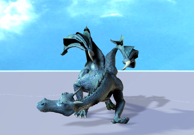 Here's a more compact animation demo with my Ice Dragon Skin (yup handmade in Photoshop). Its not in Divx format, just the standard Microsoft 1 format, so no divx needed to view. Its a quick from standing position to crawling, then he notices something in the distance... Enjoy. Now if I can just get a dual processor machine for all this heavy duty animating, maybe I could get a movie together *geeesh* :)