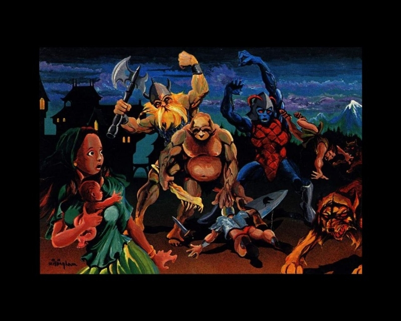 This is an intro movie for 'Module G1 - Steading of the Hill Giant Chief.' It uses artwork from the PnP module cover, and part of a music track from NWN. Patrick Cutter made a G1 module, and there are other people working on their own versions of G1; feel free to use this in your version -- the toolkit Module Properties has a tab which allows you to select a .bik movie file. To make this movie: (1) I used a scanner to scan the PnP module cover and store it as a .jpg file. (2) I used RAD Video Tools to play the .bmu (NWN music) file, then used Creative Wavestudio to record and save part of this audio track as a .wav file. (3) I used MGI VideoWave 4 to make an .avi file. (4) I used RAD Video Tools to 'bink' the .avi into a .bik file (make sure to select 800x600 scaling).