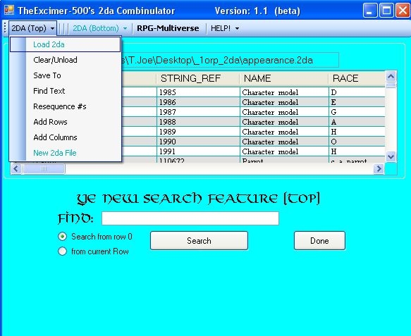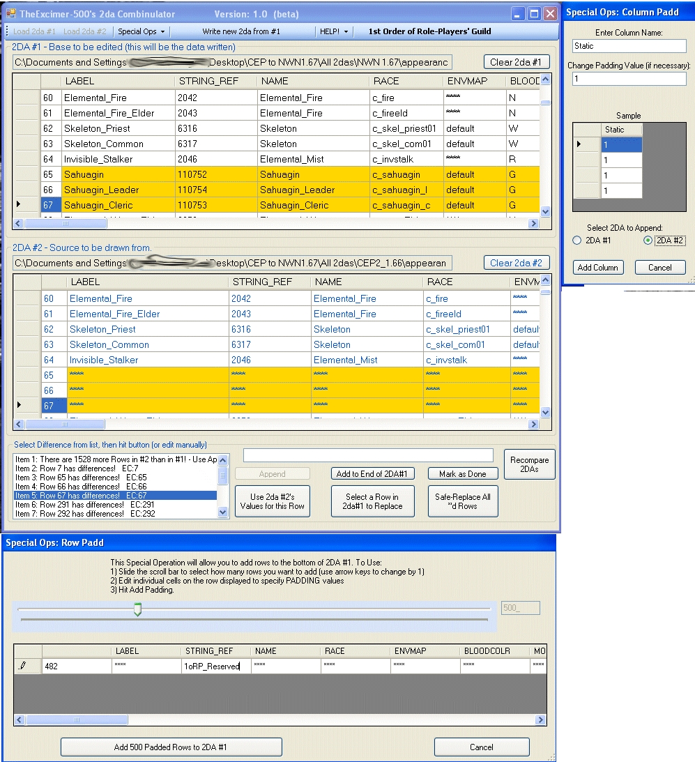 This is my 2da Combinulator for quickly editing 2das, comparing, combining, padding (rows/columns), etc...