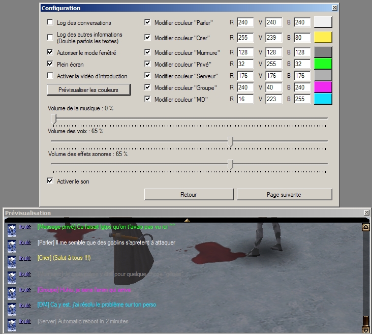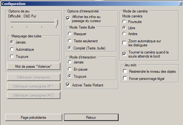 -Configurer des options "cach�es" (limitation de niveau pour les objets en solo, log des conversations, changement des couleurs du texte par d�faut...)