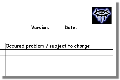 These are the OpenOffice-Calc and converted Excel-files I use for my own Bugreports. I had enough of always writing everything on this and that paper and all that chaos;). Thought I could share them, they are nothing special but I think can become helpful. The ZIP contains a english and german version in Excel (.xls) and OpenOffice-format(.sxc).