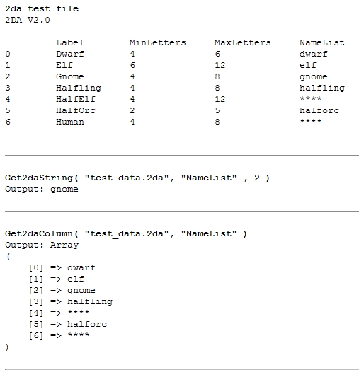 Two simple functions which might come in handy when presenting NWN data on a website. Best used with a 2da source collection like this one: http://nwvault.ign.com/View.php?view=Other.Detail&id=700
