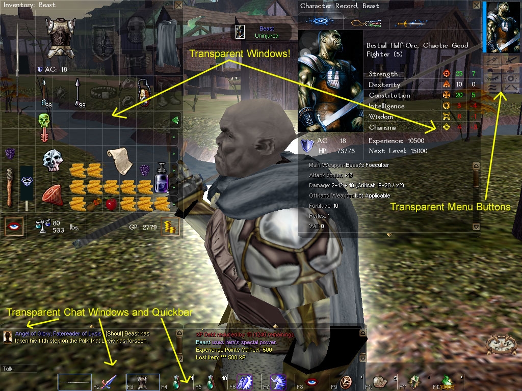 This is an upgraded, unabtrusive, informative, and transparent GUI for Neverwinter Nights. It was designed so that the game interface would not intrude as much on play of the game.
