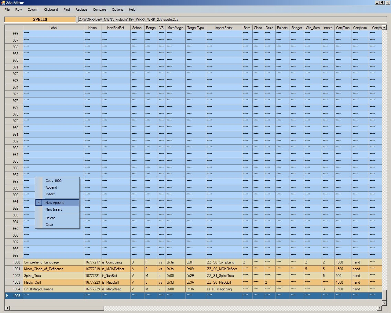 Might be just me but when you view a saved 2da in Notepad after being saved within your editor the column spacing is fubar'd quite a bit. While the 2da is fine, it makes it hard to edit later, or would make it hard to edit for someone using Notepad rather than the editor.