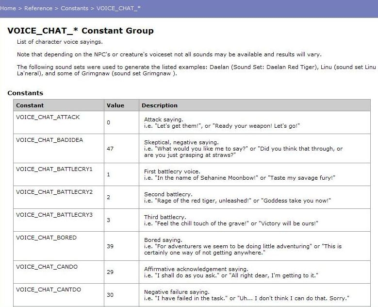 VOICE_CHAT_*: Fleshed out description column with example sayings. Description information added by Kolyana.