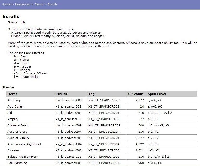 - Updated the resource pages for creatures, items, sounds and placeables to include the new 1.69 content.