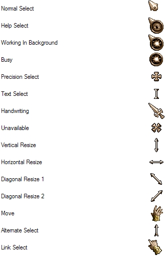 Nice cursor set. Couldn't find the diagonal cross shown in the image -- the one used for 'unavailable', so I just substituted the spare 'talk to' icon instead. Works well and looks great. Nice job.