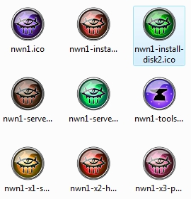 This is a collection of recolored NWN2 icons for NWN1, expansions, and a certain special server. Obsidian's NWN2 icon is much more attractive than the NWN1 nwmain/nwupdate icons (sorry, BioWare!)