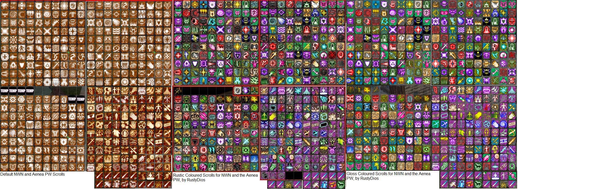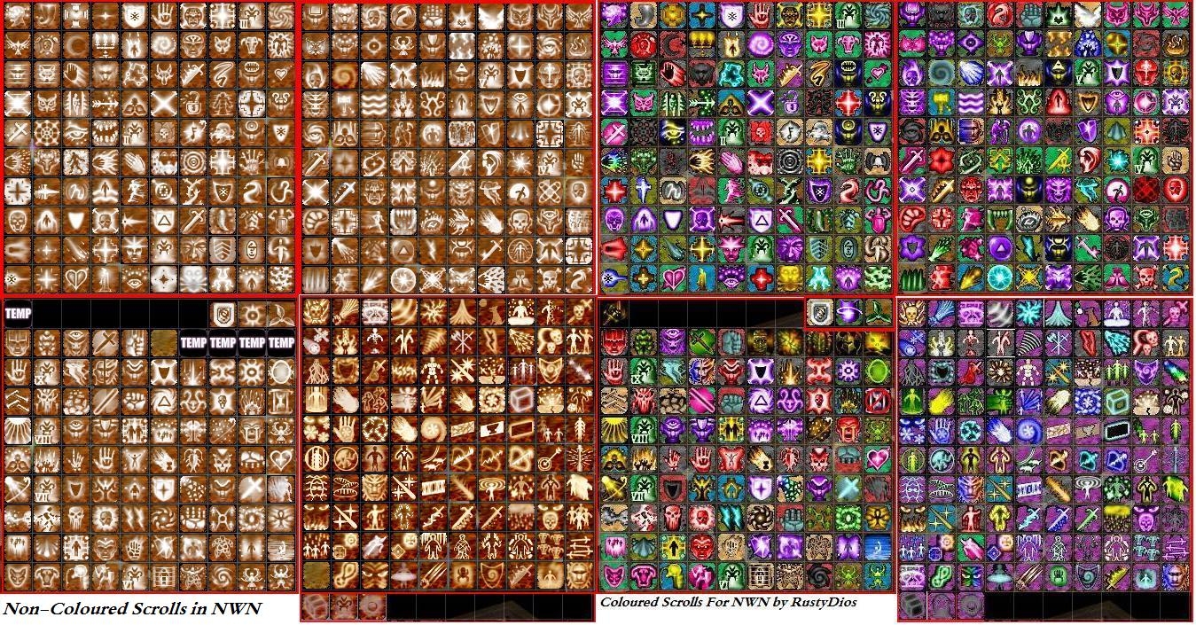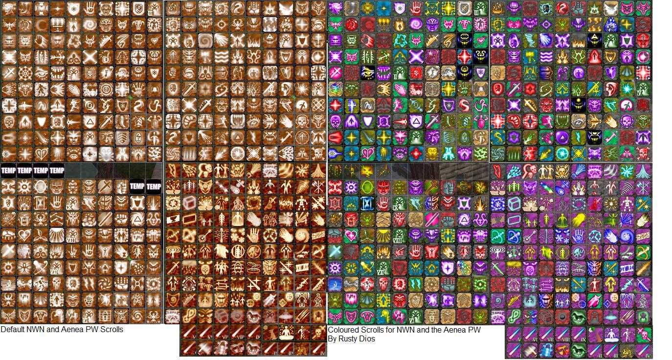 Then this is just what you need. A set of coloured scroll icons which replace the normal standard BioWare scrolls.