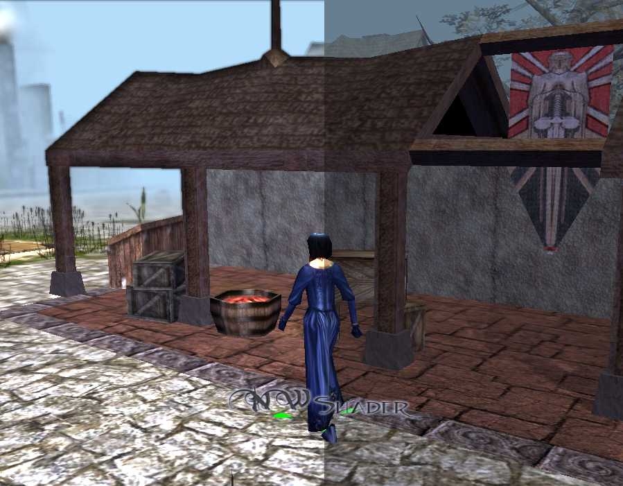 In simple terms, NWShader lets NWN do fancy modern graphics. As everyone has noticed, NWN's graphics are a bit old. There are a few projects to help with this, especially chico400's awesome NWNCQ and Project Q, but those only go so far. NWShader picks up with going under the game and turning on a bunch more features.