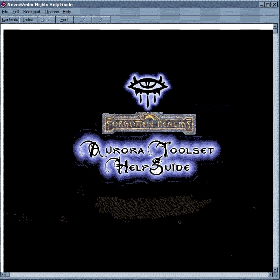 This is the NWN Aurora Toolset Help Guide - UPDATE. It is an updated version of the finished project for use with the Aurora Toolset. It includes a complete look at the Toolset's main window, with tabs explaining the Toolbar, Palette, and Cameras. The archive contains a text file detailing this project. Many thanks for all of your support.