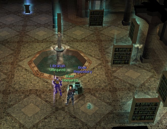 SPW (Semi Persistent World) Library 1.0 Author : Bamf Created : August 21, 2002 Last Modified : September 15, 2002 Summary: This module has been setup to demonstrate the operation of a semi-persistent world library system. A semi persistent world is a NWN module environment which combines automated adventures with regular occurrences of DM intervention. This library system does not realize its full potential unless a DM is available and willing to interact with it. The types of interaction required of a DM is outlined in this document. 1. Major Features The Library area comes complete with a librarian, a book repository for donating new books, and a mechanism to place new books into circulation. Players are not allowed to leave the library with library books in their possession. Never underestimate the lengths a PC will go to in order to walk away with something they aren't intended to have. :)