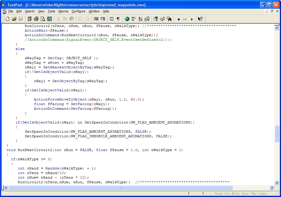 Title Textpad Syntax Definition Author Scott Nickell Submitted / Updated 07-08-2002 / 06-29-2005 Category Utility Format Other Description This is a syntax definition file for TextPad 4 (http://www.textpad.com), to allow syntax highlighting of NWScript, the scripting language used by Neverwinter Nights. Files