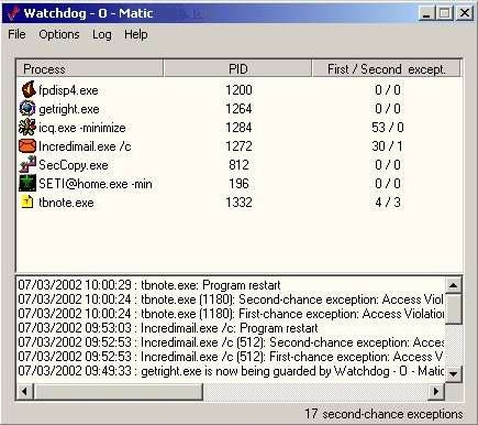 Title Watchdog - O - Matic Author Wouter Dhondt Submitted / Updated 08-01-2002 / 06-29-2005 Category Application Format Exe File Description (Editor: Please note that this is a commerical package) Use this program to keep the neverwinter nights server running. This application will detect a crashing and hanging server. Watchdog - O - Matic will restart the server if a problem occurred. You can also receive mails from this program if the server crashed. Files