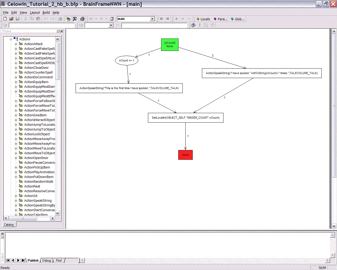 This tool, BrainFrameNWN, allows you to construct scripts graphically using a flowchart-like display. Actions and decision points are represented as flowchart nodes connected by arrows, and the flowcharts can be nested, making complex behaviors easier to script. (It also makes reuse of script segments easy.) Once you've built your visual representations of the behaviors you want, the tool will automatically generate NWScript code for you.