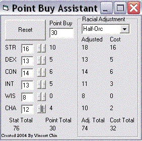 This is a very small widget that I made in Visual Basic to help me point-buy ability scores. In the four days since I created it I've used it like 12 times, so I figure it might be useful for other people too.