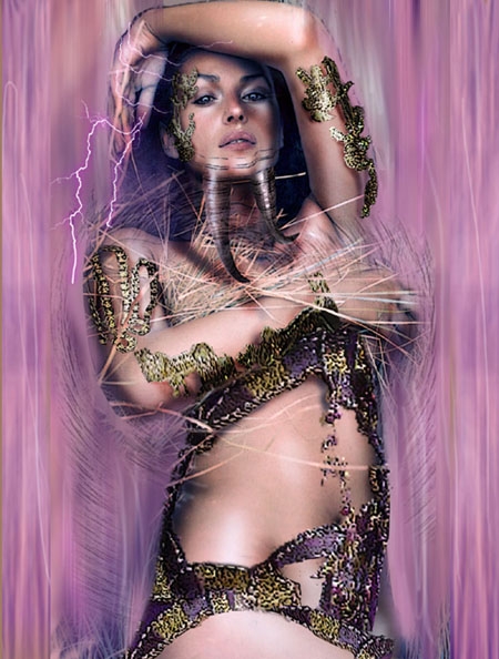 I'm working on a story set in a world full of gods. I don't think I'll ever make a module out of it, (I still haven't finished the Underdark module), but writing a story is cool too. Anyways; this is a goddes in that world: Loken. Goddes of all that is natural. Photo-collage. Base picture: Monica Belluci (?) lying in hay. Added more pictures, and repainted a lot of area's. Different type of background this time.