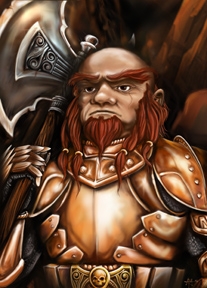 This is another portrait created for Dark's Upcomming module 'Eye of the Beholder' - coming soon. This started as a screenshot from the toolset so I could get the model's head right - then painted over top. Added the axe & arm, belt, background, more hair, chainmail, slight mod to the armor, etc...