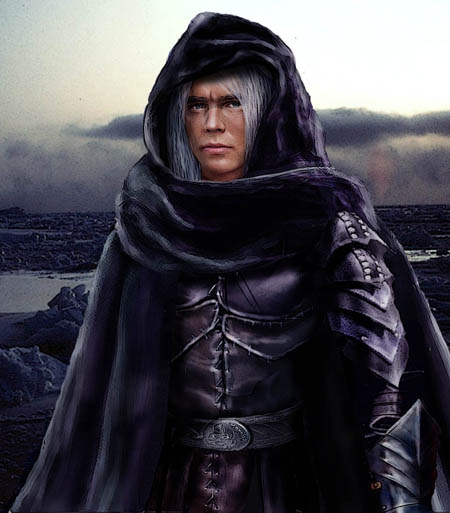 I based this collage on a drawing of Todd Lockwood. I used it as base image and pasted head and clothing over it. So if the head is too small, blame Lockwood, :)