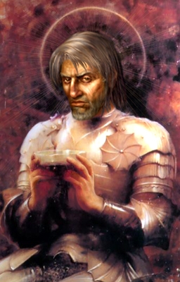 This was made with the Caesar portrait's face (I just love his expression), and a psinting of Percival I found on the net. The lighting on the halo and background were done in Paintshop Pro7. It has been asked 'Why are all paladins staring off into the distance?'. Well, this is one of two portraits I made with the Caesar portrait's face where a paladin is looking right at you. :) Enjoy :)