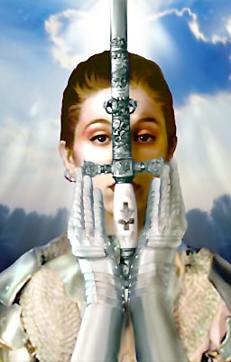 The background is simply brilliant: it gives a heavenly athmonsphère to the portrait. The armor is also very beautiful and correpond completely in the style. Although the sword is magnificent, the problem is that it hides the face. It is a beautiful effect I find, but for a portrait it is a little pity (it is always interessant to know what face has his character, no?).