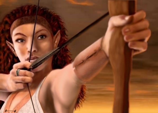 Oh my god! I put a hell lot of time and effort into this one and now I don't even know if it was worth it. The lighting was especially difficult to handle. Take a look at the base image and you'll probably understand what I'm talking about: http://www.schuetzenkreis-saulgau.de/images/hintergrund_bogenschuetze1a.jpg . Hope someone finds a use for her. (UPDATED: see below) Comments most welcome.