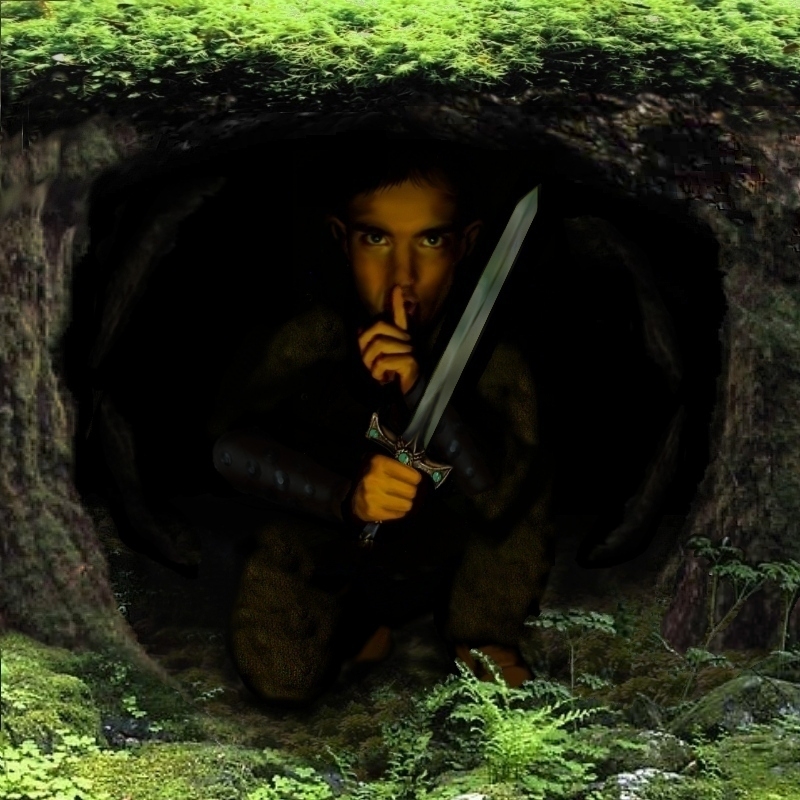 Oh my God, why is he hiding there terrifying innocent adventures walking in the woods and thinking of nothing... *giggle* I nearly climbed the next tree..