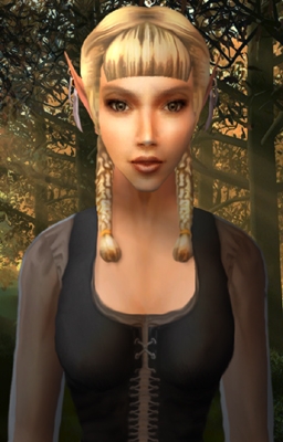 This is another screenshot workover using a multilayered painting of woodlands in the background. It took a while to get the lighting and shadows set correctly from the trees to her face/neck. Again, I believe this head is also one modeled by Rhedd, a fansastic modeler who makes Morrowind custom content. Enjoy :)