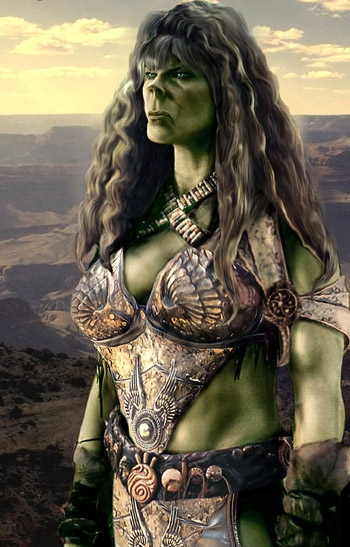 Created from a base picture of Xena WITH her head this time, only ghastly deformed, sorry Xena. Usual photo-collage, some area's repainted, background added, lighting, colouring etc. etc. etc.