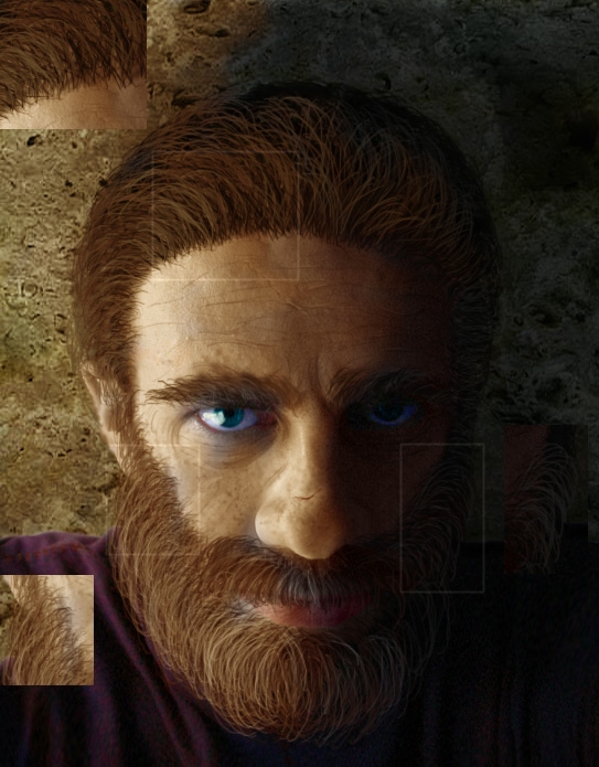 Why shouldn't a dwarven fighter be intelligent...? If he survived several adventures he needs a lot of muscle or enough brain to decide when to fight and when to retreat (he doesn't look like fleeing). And before someone points out that there is no visible piece of armor: he also should know when those inconvinient steelplates are not necessary ;-). Updated: Only a minor change: hair and beard now actually cast shadows on the skin and thus fit the face more smoothly. 2nd update: Again I worked on the hair (after getting more experience) it is now fuller and hopefully more realistic. I also reworked the lighting and the shadows. All of these are small changes so they won't be that noticable in the small ingame portraits. But I just 'had' to put more work in him and then: why not post it ;-). I inserted parts of the old Picture in the big preview (so that changes may even be noticed ;-) ).
