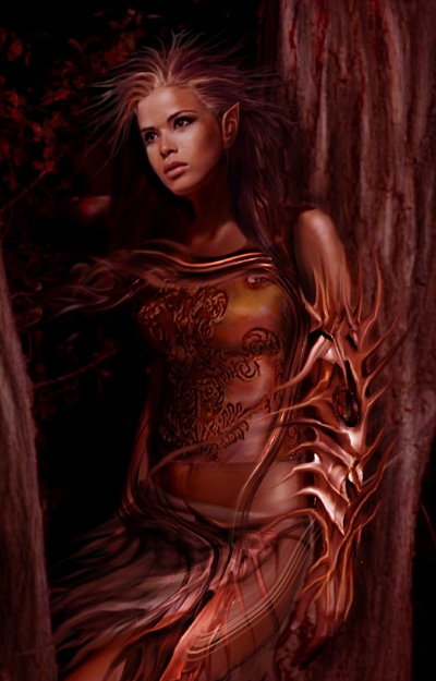 This rocks!Exsactly how all Druads should look!Only problem...I don't think that Dryads wear metal,and that thingie on her arm looks pretty darn metal.