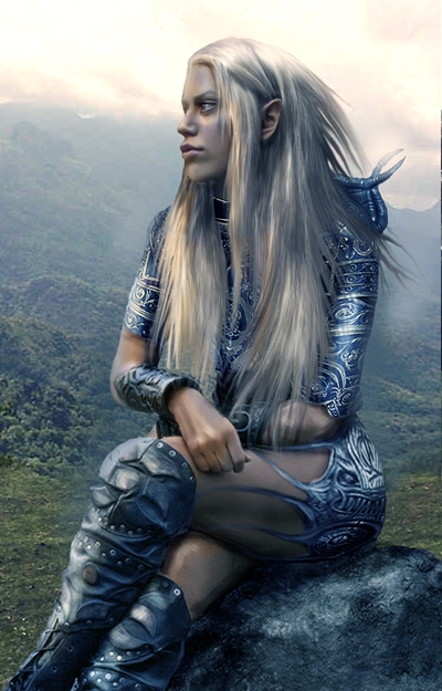 Elven warrior created from several pictures. Head model is from a stock picture at Deviant Art by Wycked. Thanks! Armour pieces and body model (Xena) added, added background. Well you know the drill :)